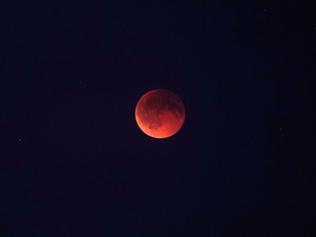 Der verdunkelte Mond über Friaul-Julisch Venetien. Der Stern rechts oben ist Lambda Aquarii. Foto: Jakob Weyde.